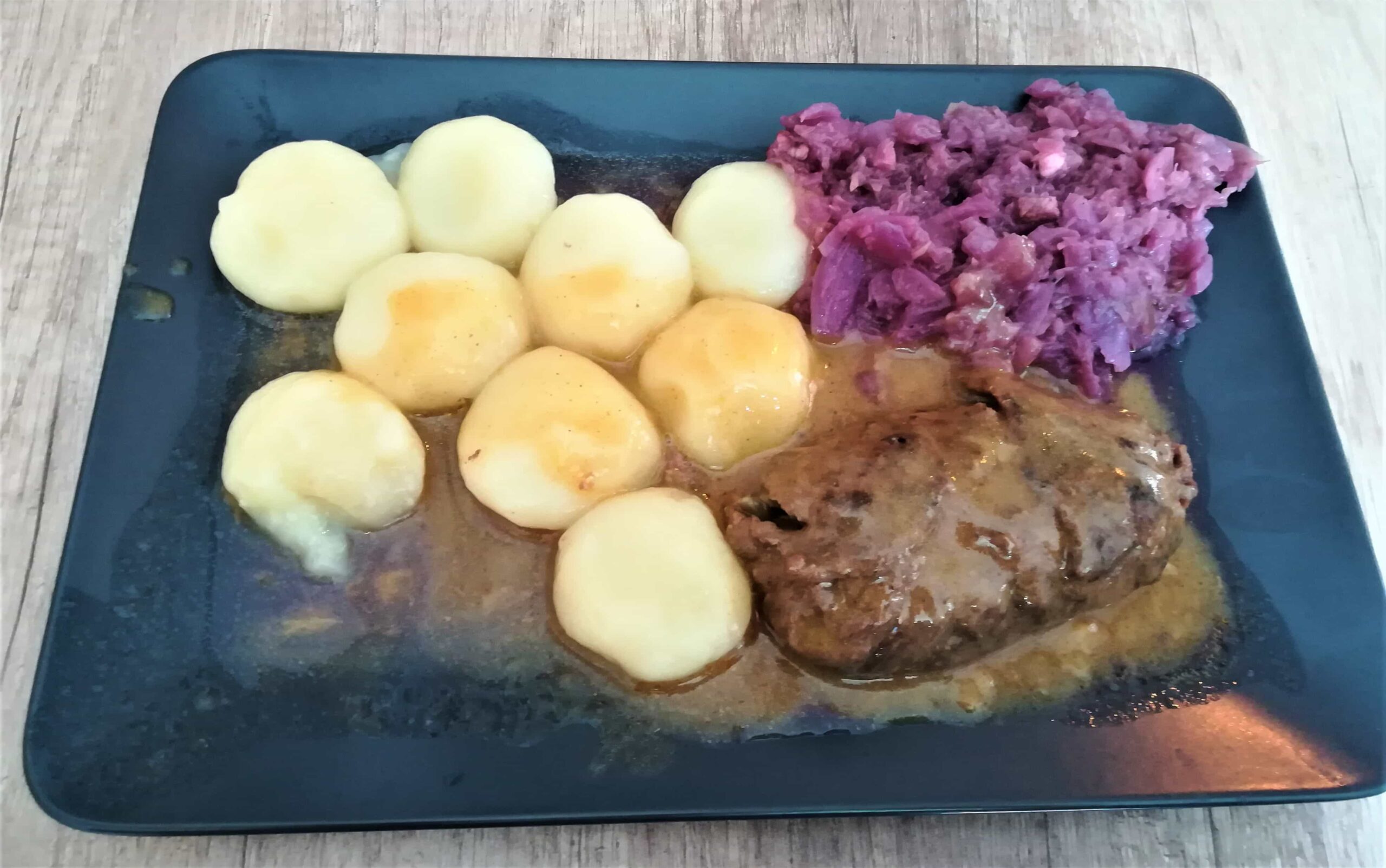 Rolada śląska z modrą kapustą i kluskami – klasyka na talerzu