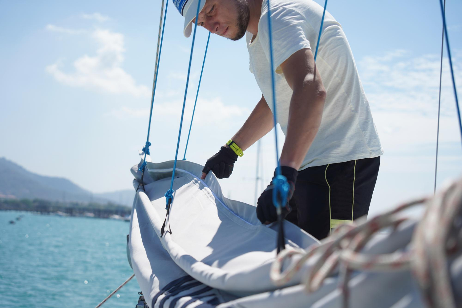 • żagle i takielunek – ocena stanu żagli, czyli sprawdzanie czy nie ma przetarć, dziur bądź rozwarstwień. Regularne sprawdzanie lin, bloczków i okuć, to także istotne zadania, bowiem nawet najdrobniejsze uszkodzenia mogą być realnym zagrożeniem podczas żeglugi. Warto pamiętać również o regularnym płukaniu żagli słodką wodą, aby usunąć sól, a także o ich wysuszeniu przed złożeniem, by uniknąć pleśni;